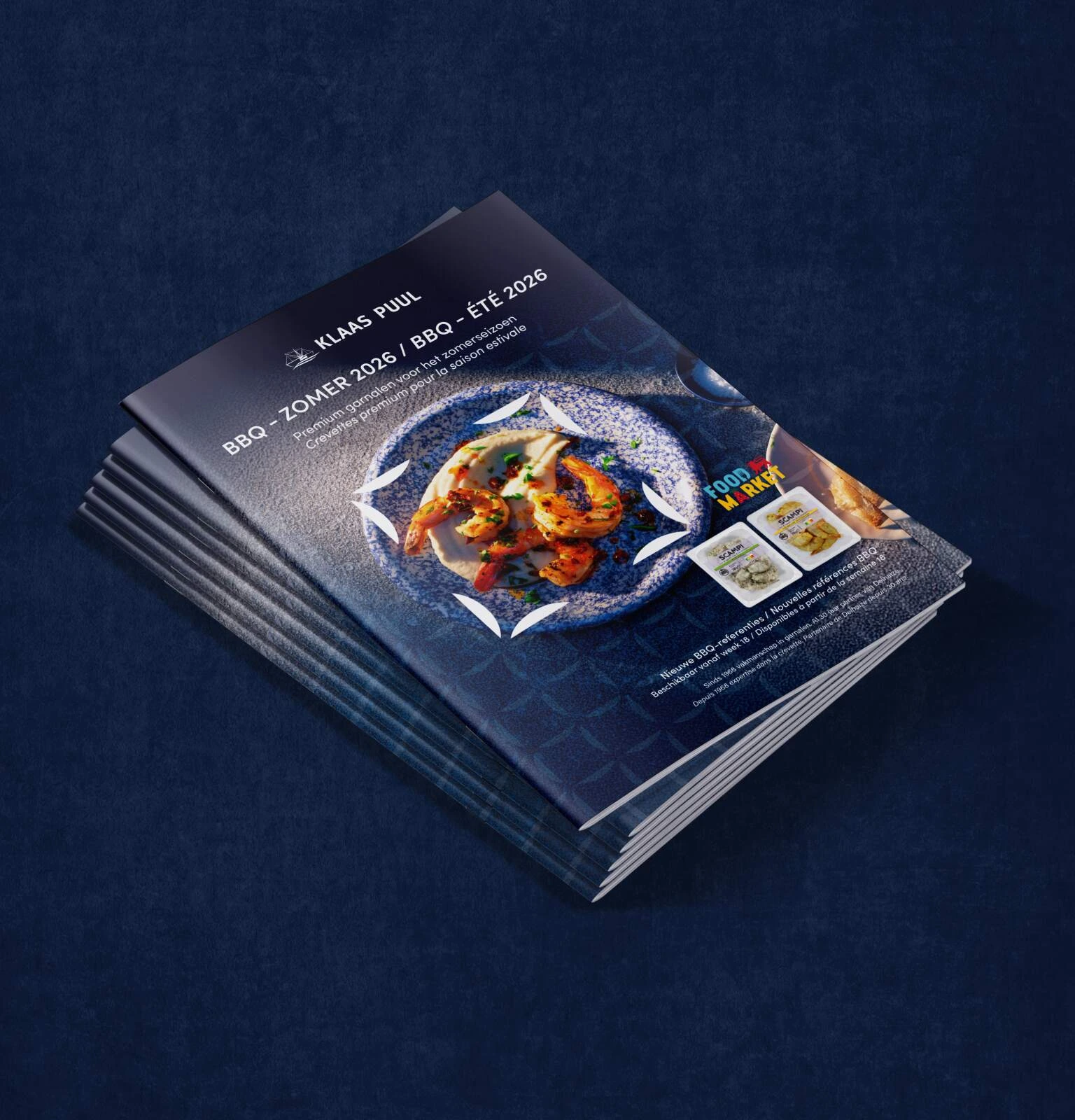 Vanuit deze strategie is een vernieuwde merkidentiteit ontwikkeld die rust, kwaliteit en controle uitstraalt. De visuele stijl werd internationaler, consistenter en meer onderscheidend, zonder het herkenbare karakter van het merk te verliezen. Zo sluit de uitstraling naadloos aan bij de positie van Klaas Puul binnen de Europese seafoodmarkt.