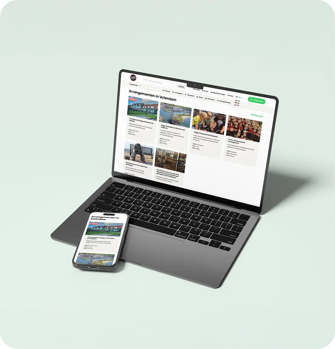 Elk uitje bevat overzichtelijk alle benodigde informatie, zoals startpunt, pakketinhoud, gewenste datum & tijd en fijne tips. En in vier verschillende talen: Nederlands, Engels, Duits & Frans. Daarnaast is de webshop volledig gekoppeld aan het interne boekingssysteem. Hierdoor worden reserveringen, beschikbaarheid en voorraad automatisch gesynchroniseerd. Klanten boeken eenvoudig online, terwijl het systeem real-time alle data verwerkt, zonder dubbelingen of fouten.