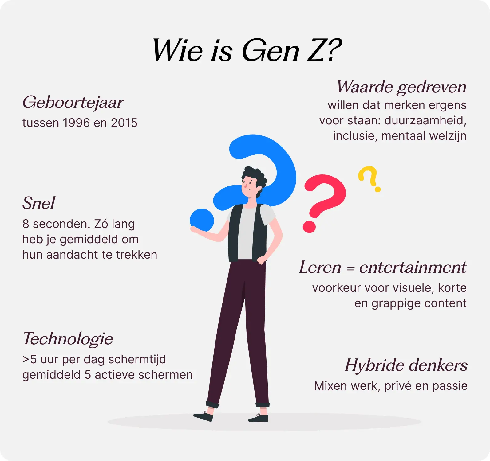 Bij QStylez denken we niet alleen na over hoe content eruitziet, maar vooral ook over hoe het aanvoelt. Dat doen we met een team waar jonge stagiaires naast ervaren makers staan. Daardoor krijgen we dagelijks input van meerdere generaties. En dat helpt, want content die werkt voor Gen Z, moet aan andere regels voldoen dan wat we vijf jaar geleden maakten.